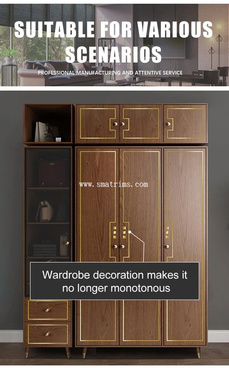 आप निम्नलिखित मामलों की जांच कर सकते हैं। जब स्टेनलेस स्टील टाइल ट्रिम 6 मिमी वार्डरोब, अलमारियाँ, दरवाजे और पृष्ठभूमि पर लागू होती है, तो प्रभाव बहुत फैशनेबल और उन्नत होता है, जो बहुत अधिक लागत बढ़ाए बिना आपके सजावट स्तर में सुधार करता है।